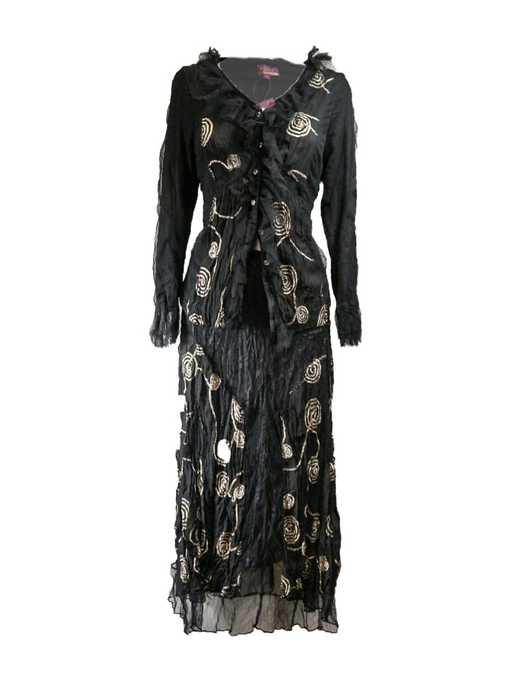 The sheer tulle adds a subtle dimension, while the golden borders provide a gentle shimmer that accentuates the garment's sophistication. Available in brown and black, this jacket is versatile and perfect for completing a coordinated set along with the skirt, enhancing its style and charm.
