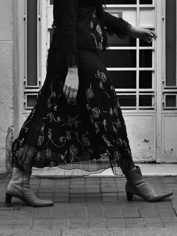 Crafted with attention to detail, this skirt gracefully accentuates the silhouette. The same range of available colors, brown and black, offers versatility to suit different occasions and style preferences.