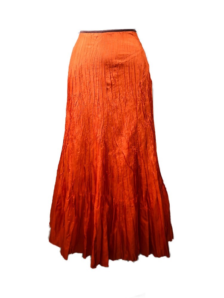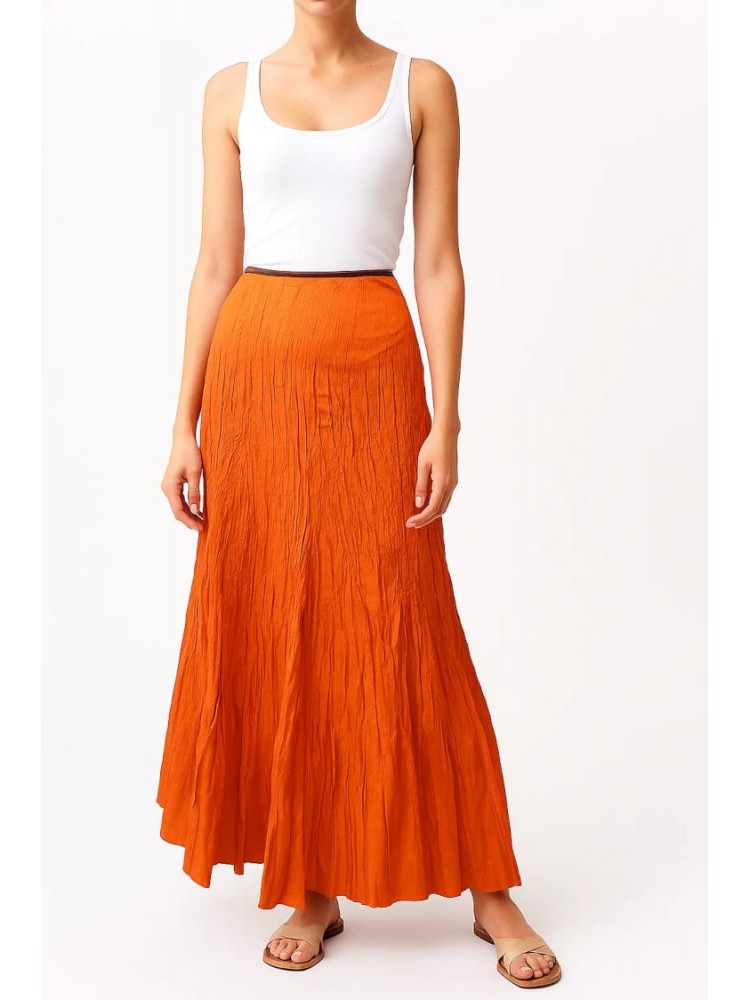 Destaca esta temporada con la falda plisada naranja de satén, una prenda que combina el brillo elegante del satén con el movimiento sofisticado de los plisados. Su tono naranja cálido y enérgico aporta vitalidad, mientras que su tejido fluido realza cada paso con sutileza.